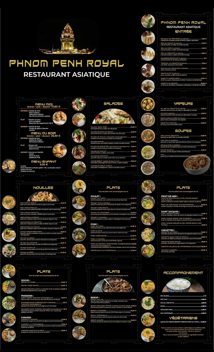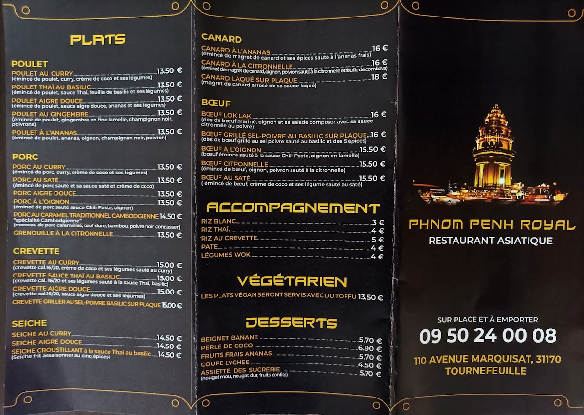 Restaurant PHNOM PENH ROYAL in Tournefeuille offers an authentic taste of Khmer and Southeast Asian cuisine, expertly crafted to replicate the flavors of Cambodia and Vietnam. The menu features standout dishes such as rich beef pad Thai, aromatic chicken curry, and crispy, flavorful nems, all served fresh and warming—perfect for a comforting meal. Diners consistently praise the balance of spices and traditional recipes, emphasizing the genuine culinary experience.